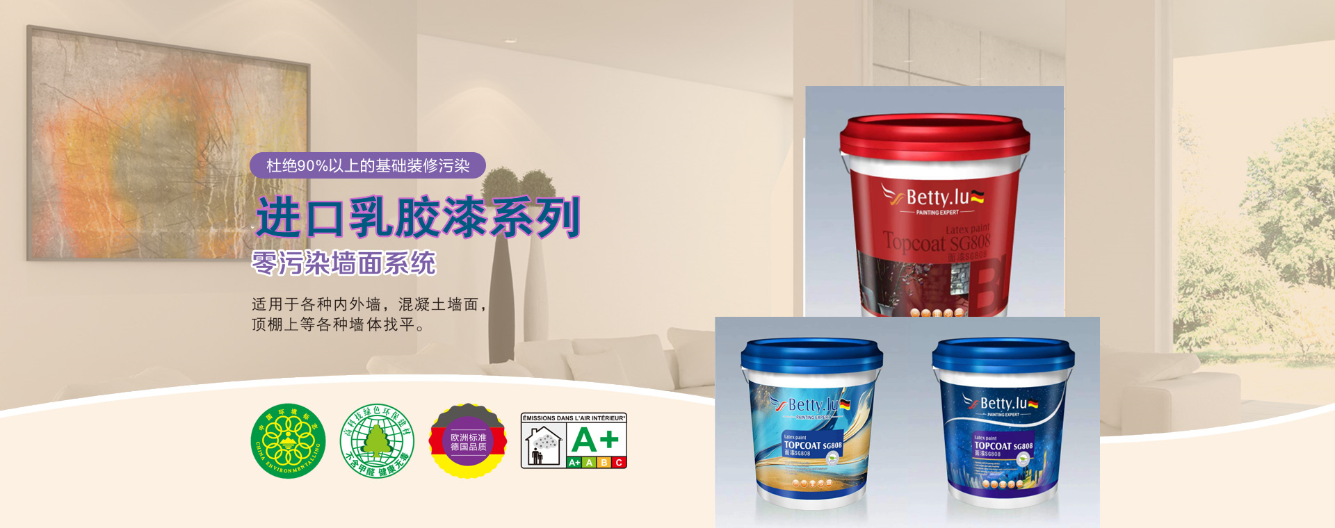 Betty.lu(匠璐)為德國原漿原罐進口的高端水性涂料品牌。品牌工廠符合德國衛生制造標準,獲得法國????A+認證,憑借其多年的德系精工和全封閉、全自動化的生產工藝,做到從生產源頭到您家的整個過程零污染。品牌秉承德國文化的嚴謹、匠人態度,榮獲歐盟玩具漆安全認證,真正做到將高端優質、環保健康的歐洲品質生活帶給您和您的家人!
